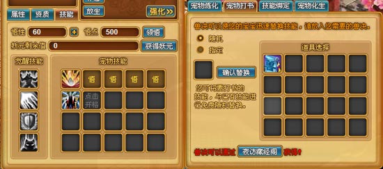 在新的宠物打书面板中,可以更清晰地看到宠物已有的技能以及包裹中的兽决,而不必再费眼神在包裹中搜索了。