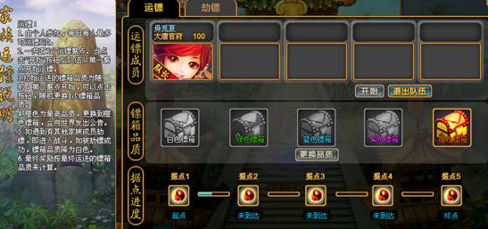 运镖注意咯,不会直接到达终点,每次到达据点是需要自己按开始的。因为可以更换品质的关系嘛。